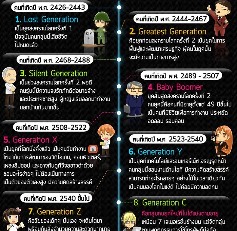 ที่มาจากกระทู้ “นิสัย ของคน 8 GEN มาดูกัน คน 8 เจเนอเรชั่น คุณอยู่ในกลุ่มไหนกัน ? + ปัญหาระหว่างคนทำงาน 3 Generation จะแก้อย่างไร?”