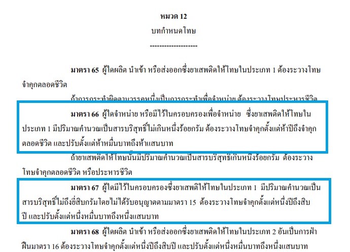 บทกำหนดโทษของ กม. ยาเสพติดให้โทษ