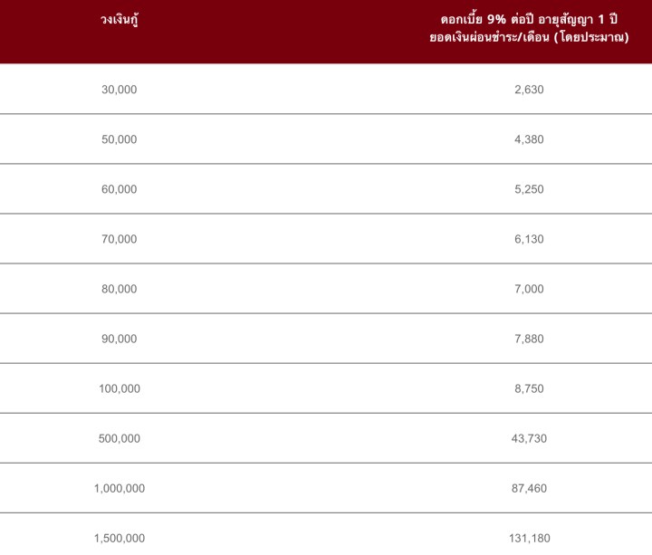 - เลือกดอกเบี้ยได้ถูกที่สุดในท้องตลาดแล้ว เพียง 9% ต่อปี
