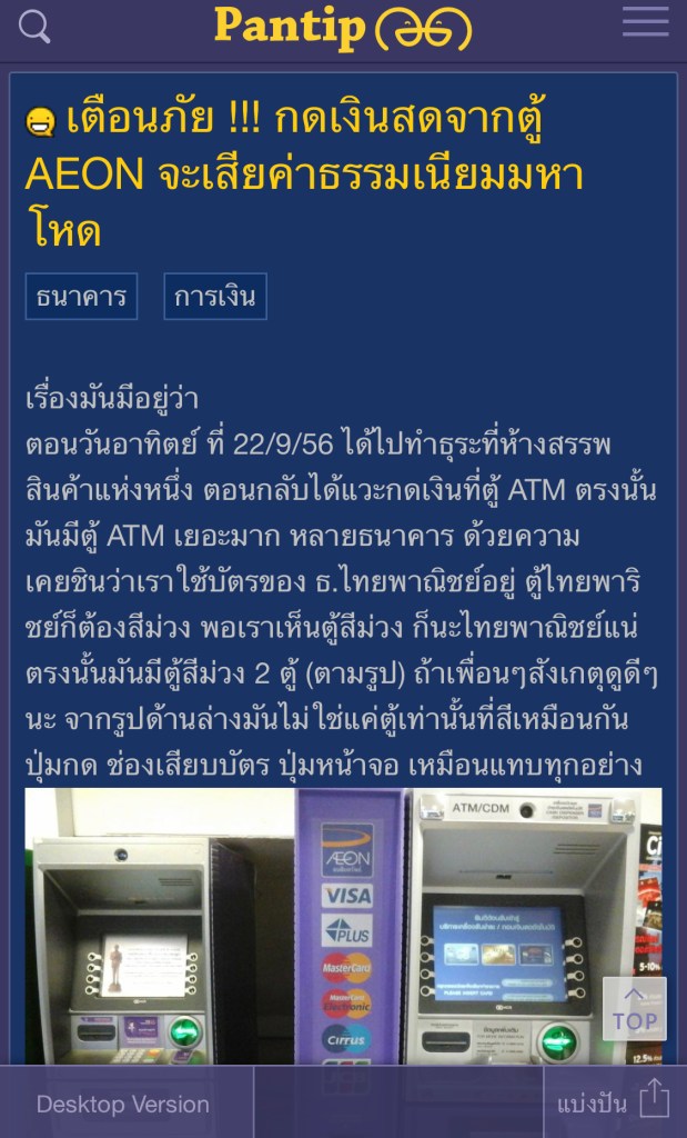 การกดเงินกับตู้อิออนเองไม่เสียค่าธรรมเนียม เสียบบัตรเข้าไปก็ไม่เสียค่าธรรมเนียม ตู้ ADM ของอิออนมีข้อจำกัดในการติดตั้ง เนื่องจากเป็นตู้ของสถาบันการเงินข้ามชาติ (จากญี่ปุ่น) จึงมีการเรียกเก็บค่าธรรมเนียมบัตรของธนาคารอื่นที่จะมาใช้กดกับตู้ AEON เอง เกิดเป็นความเข้าใจผิดของคนที่คิดว่ากดเช็คยอดเงินกับตู้ AEON ก็เสียค่าธรรมเนียมเหมือนตู้อื่น