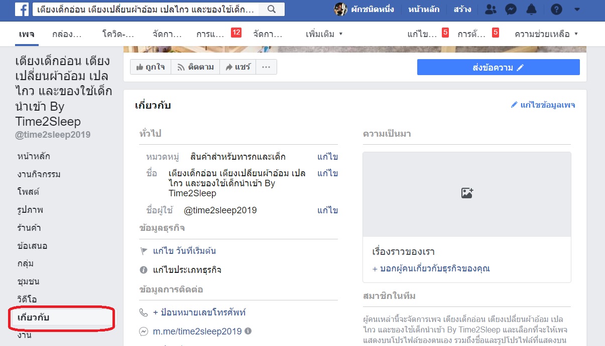 - มีคำอธิบาย Tag Line ซึ่งควรเปลี่ยนไปใส่ในช่อง “เกี่ยวกับ” ของเพจมากกว่า