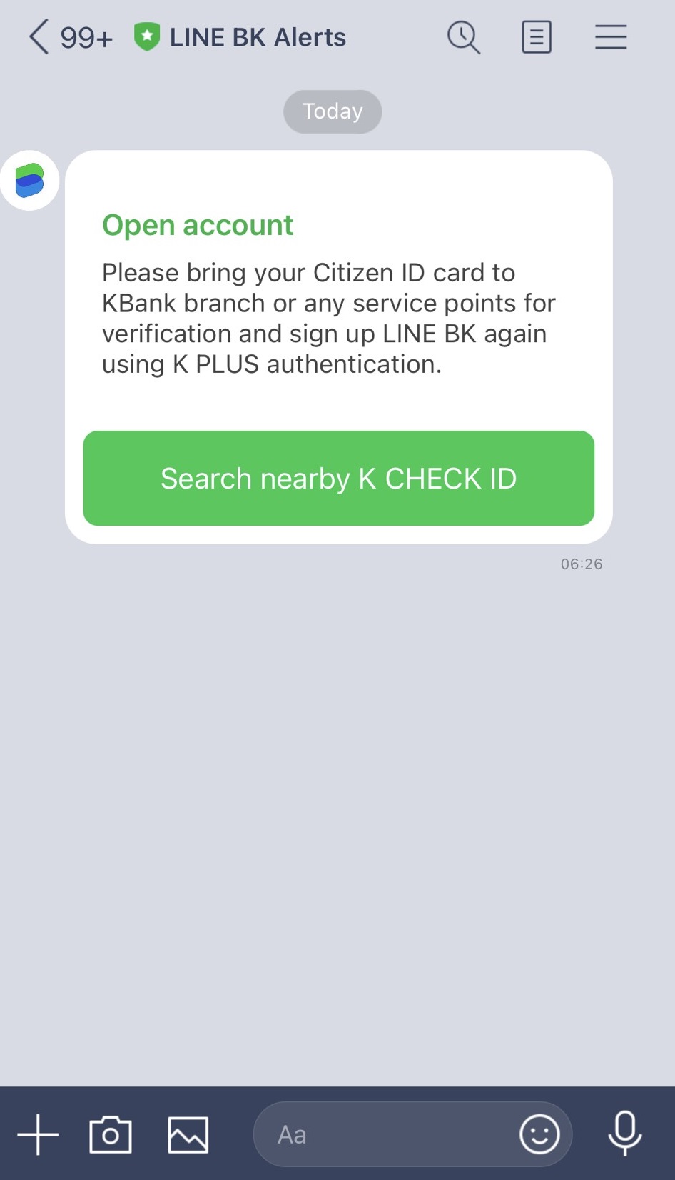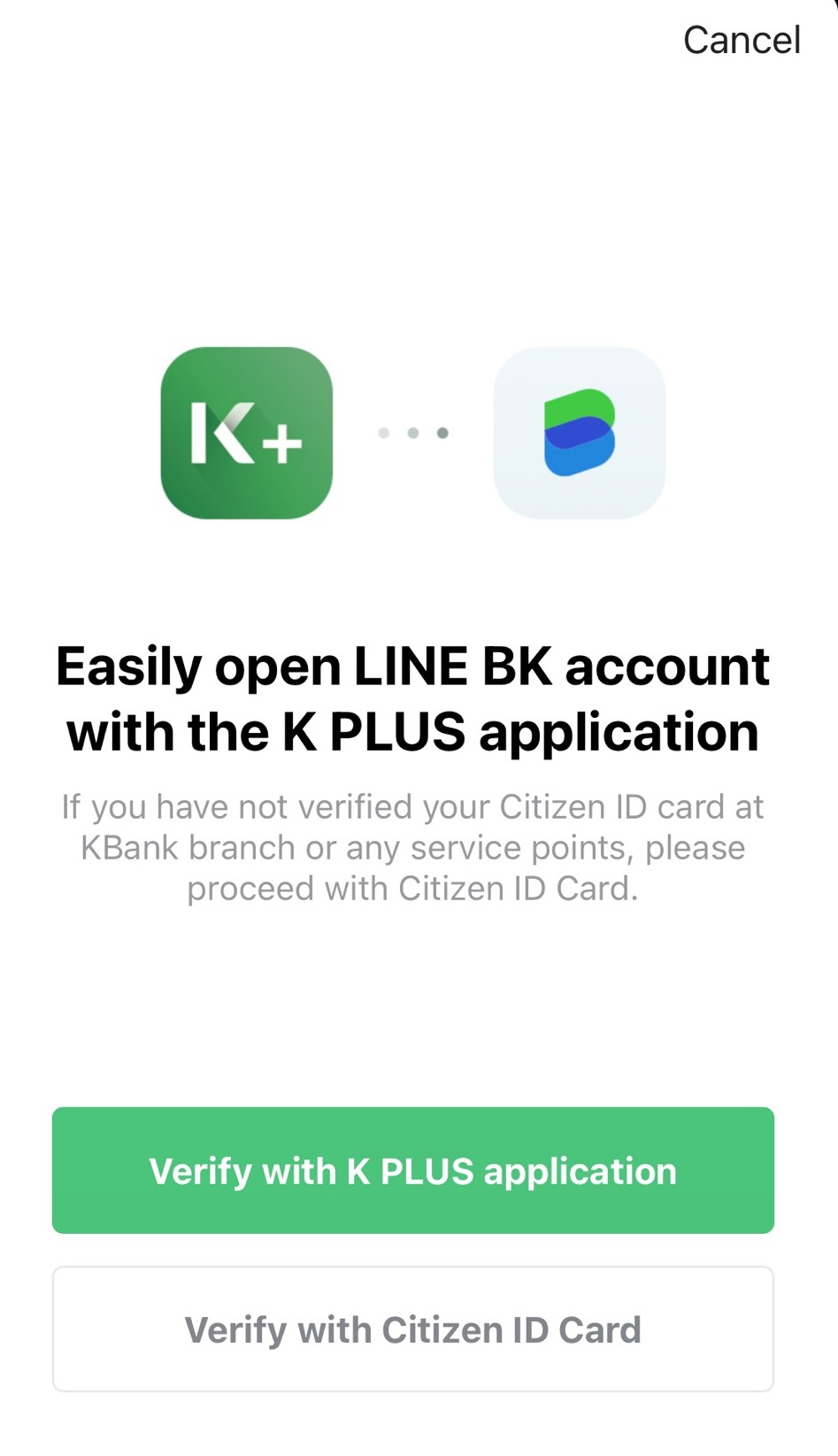 5. ระบบจะเชื่อมต่อกับแอปพลิเคชั่น K-Plus เพราะฉะนั้นควรมีแอปนี้อยู่ในเครื่องอยู่แล้ว และมีการเปิดใช้บริการไว้ก่อนแล้วจึงจะสมัคร LINE BK ง่ายขึัน