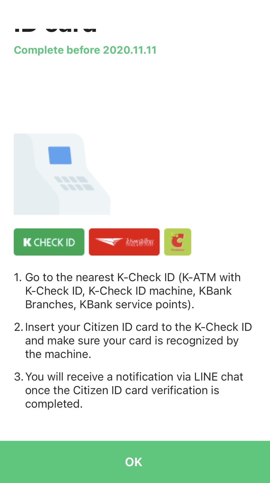เมื่อยืนยันตัวตนด้วยเลขบัตรประชาชนเสร็จก็จะมีหน้าต่างที่แสดงขึ้นมาให้คุณไปหาตู้เอทีเอ็มเพื่อยืนยันตัวตนอีกครั้ง ด้วยการหา Location ตู้ที่สอดบัตรประชาชนได้เท่านั้น ดู Location ได้จากลิ้งก์ที่ไลน์แนะนำมาในแชท