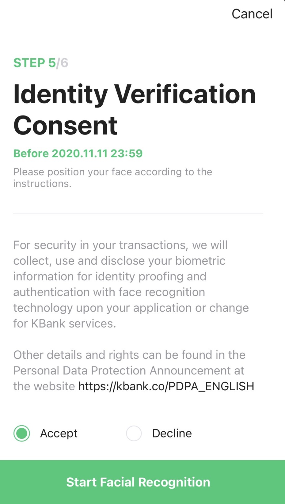 6. ต้องเลือกยืนยันตัวตนได้ 2 ช่องทาง คือยืนยันตัวตนในแอปฯ K-Plus กับการยืนยันตัวตนด้วยบัตรประชาชน ซึ่งผู้เขียนใช้วิธียืนยันตัวตนด้วยหมายเลขบัตรประชาชน ทางระบบก็จะส่ง OTP มายังโทรศัพท์มือถือ แต่หลังจากนั้นก็ต้องวิ่งหาตู้เอทีเอ็มเพื่อสอดบัตรประชาชนยืนยันตัวตนอยู่ดี