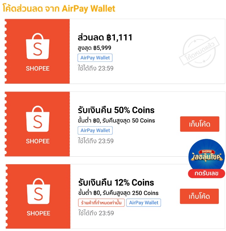 - โค้ดส่วนลดจาก AirPay