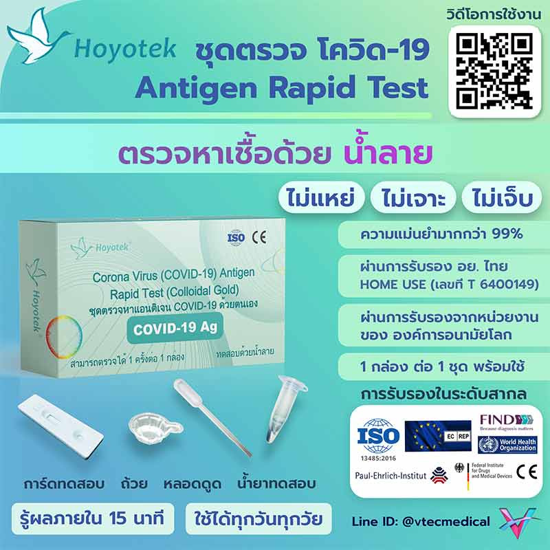 Hoyotek ชุดตรวจโควิดแบบตรวจทางน้ำลาย กล่อง 1 ชุด