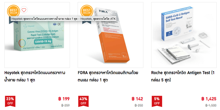 Antigen Test Kit หรือที่รู้จักกันในชื่อ “ชุดตรวจโควิดด้วยตัวเอง ATK” ได้รับการปลดล็อกให้ขายตามร้านขายยา และร้านสะดวกซื้อ ตั้งแต่ช่วงเดือนกรกฎาคม 2564 เริ่มต้นมี 4-5 ยี่ห้อที่ขายกันในราคาชุดละ 400 – 600 บาท ปัจจุบันนี้เดือนพฤศจิกายน 2564 เริ่มเห็นราคาเบาลงเหลือชุดละ 150 บาท ล่าสุดเซเว่นออกโปรโมตผ่านเฟซบุ๊กว่ากำลังจำหน่ายเหลือเพียง 49 บาทเท่านั้น