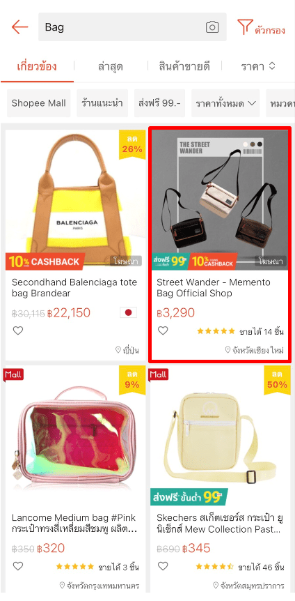 เมื่อต้องการเลือกค้นหาสินค้าใน Shopee คลิกเลือกสินค้าชิ้นนั้นๆ ลงตะกร้า หรือกด “ค้นหาสินค้า”