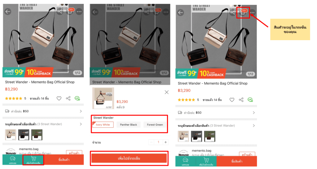 เมื่อต้องการซื้อสินค้าชิ้นนั้น กดลงตะกร้า ใส่รถเข็นเอาไว้