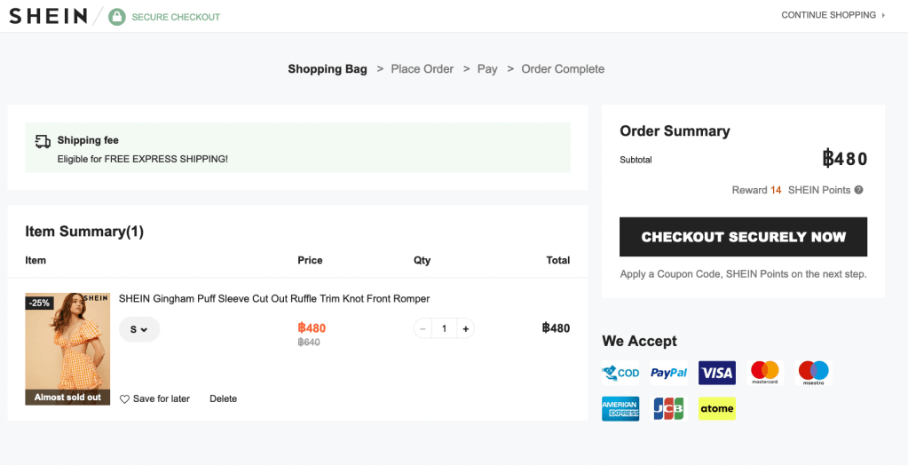 เสื้อผ้าจาก Shein ไม่มีช่วงแฟลชเซลล์เหมือน Shopee Flash Sale หรือ Lazada Flash Sale