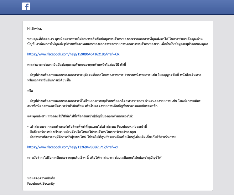 2. รอ 48 ชั่วโมง ให้ Facebook ตรวจสอบบัญชีเก่า
