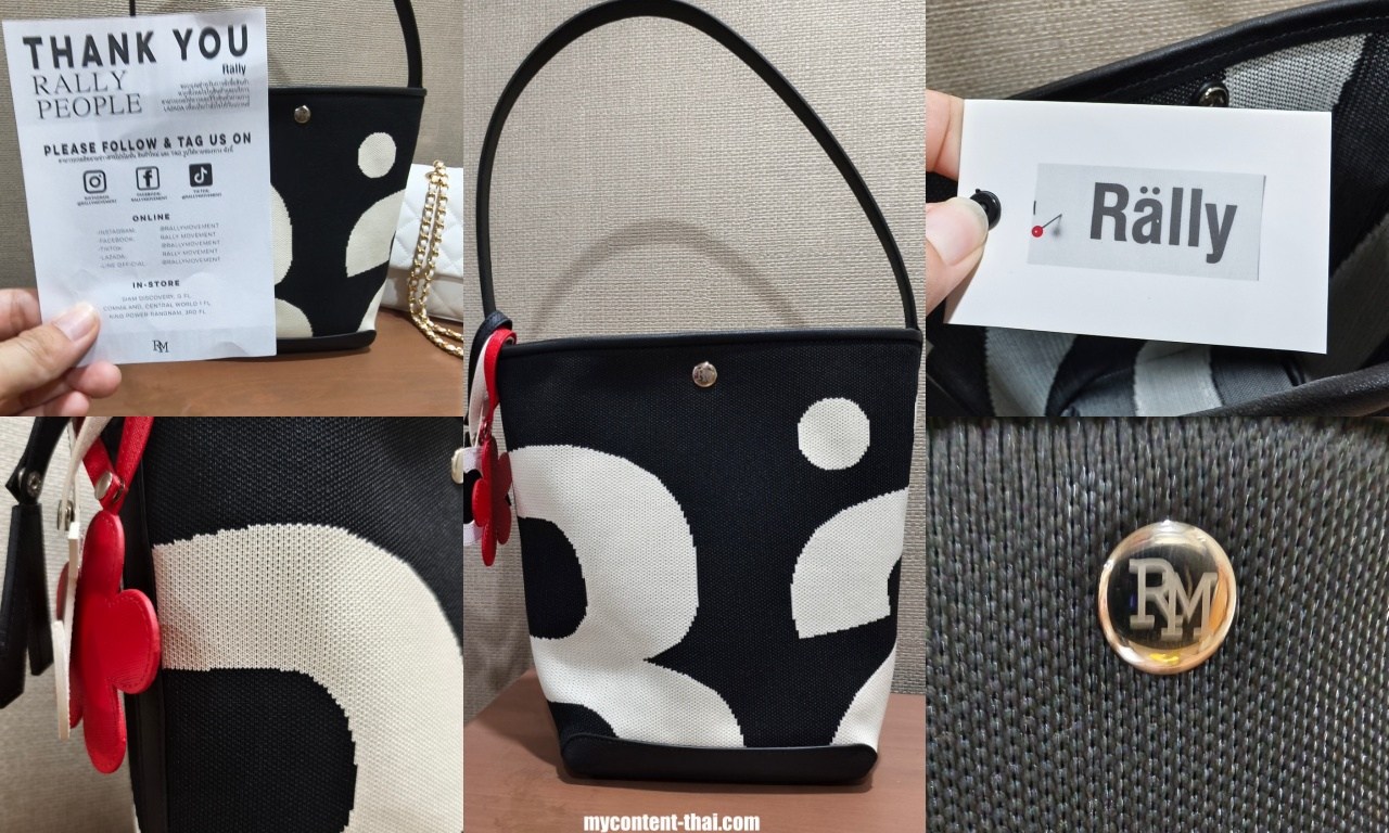 กระเป๋า Rally Movement เป็นแบรนด์สัญชาติไทย วางจำหน่ายครั้งแรกในวันที่ 25 กันยายน 2023 ผ่านช่องทาง Lazada มีคำอธิบายสินค้าว่า “A bucket bag featuring Rally’s logo pattern, crafted with Sturdy Stretch Knit technique. The bag is lightweight, durable, with the handle and parts made entirely of vegan leather, which can be easily cleaned. Decorated with RM logo buttons. A truly versatile bag suitable for everyday use.”