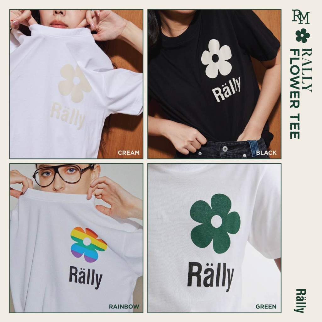 Rally Movement ไม่ได้ทำแค่กระเป๋า ยังมีเสื้อผ้าของทางแบรนด์ ใครที่ชอบแต่งตัวให้เข้าแบรนด์กัน แนะนำเสื้อยืดลายดอกไม้ ตอนนี้มี 4 สี ได้แก่ เสื้อยืดสีดำ ดอกไม้สีขาว, เสื้อยืดสีขาวดอกไม้สีเขียว, เสื้อยืดสีขาว ดอกไม้สีครีม และเสื้อยืดสีขาว ดอกไม้สีรุ้ง เมื่อใส่กับกางเกงยีนส์ ก็ดูเข้ากัน