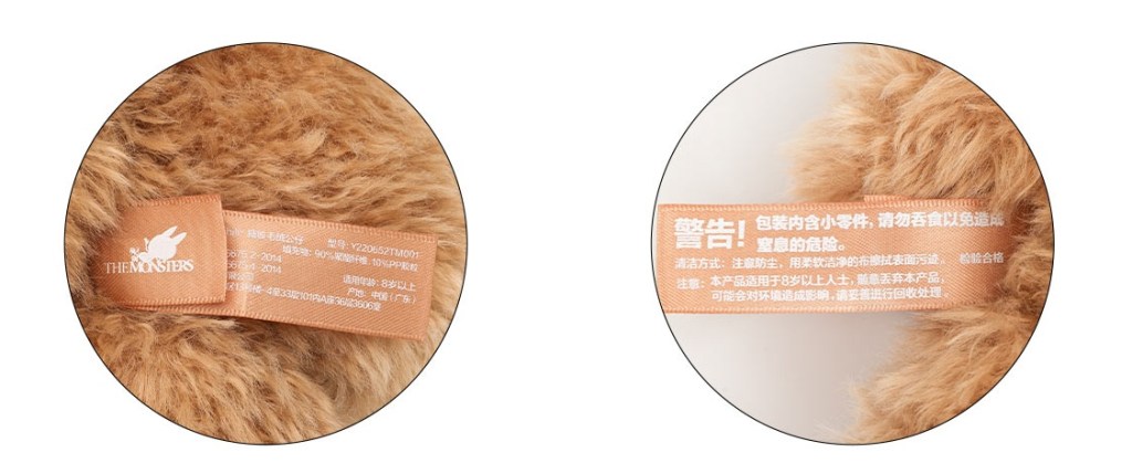 - ขนสีน้ำตาลทอง มี Tag อธิบายเกี่ยวกับการซักอยู่ด้านข้าง