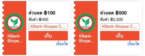 ผู้ที่ถือบัตรเครดิตกสิกรไทยช้อปปี้ เก็บส่วนลด 100 บาท สำหรับการสั่งซื้อขั้นต่ำ 400 บาท และ เก็บโค้ดส่วนลด 500 บาท สำหรับการสั่งซื้อขั้นต่ำ 2,500 บาท ในช่วง PAY DAY 25 – 29 ก.พ. 2567
