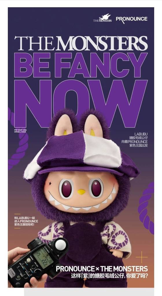 𝐋𝐀𝐁𝐔𝐁𝐔 × 𝐏𝐑𝐎𝐍𝐎𝐔𝐍𝐂𝐄-𝐁𝐄 𝐅𝐀𝐍𝐂𝐘 𝐍𝐎𝐖 𝐕𝐢𝐧𝐲𝐥 𝐏𝐥𝐮𝐬𝐡 𝐃𝐨𝐥𝐥 เป็นตุ๊กตาลาบูบู้ตัวใหญ่ ขนสีม่วง สามารถตั้งยืน ขยับแขนขา และเปลี่ยนเสื้อผ้าได้ โดยความสูงของน้องอยู่ที่ 40 เซนติเมตร มาพร้อมกับชุดไฮโซ ที่โพสต์ท่าไหนก็ดูดีไปหมด ขึ้นแท่นนายแบบคนต่อไป