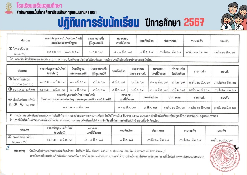 กำหนดการรับสมัครสอบเข้า ม. 4 โรงเรียนเตรียมอุดมศึกษา ปีการศึกษา 2567