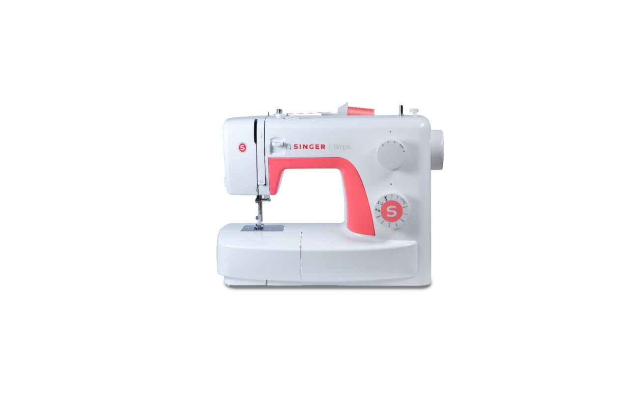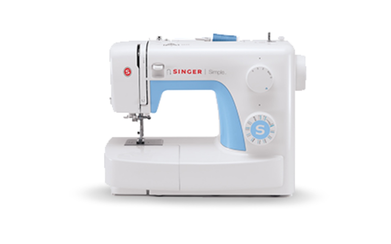 จักรเย็บผ้ากระเป๋าหิ้วซิงเกอร์ รุ่น Simple 3221 หัวจักรสีขาว ปุ่มหมุนสีฟ้า มีสัญลักษณ์ตัว S แทนคำว่า Singer เย็บได้ 21 ลาย และเย็บรังดุมอัตโนมัติได้ในขั้นตอนเดียว  ฐานจักรถอดออกเพื่อเย็บกางเกงทรงกระบอกได้ และมีตัวสนด้าย เพิ่มความสะดวก เหมาะสำหรับผู้เริ่มต้นใช้จักรเย็บผ้าที่ทำได้หลายอย่างในตัวเดียว