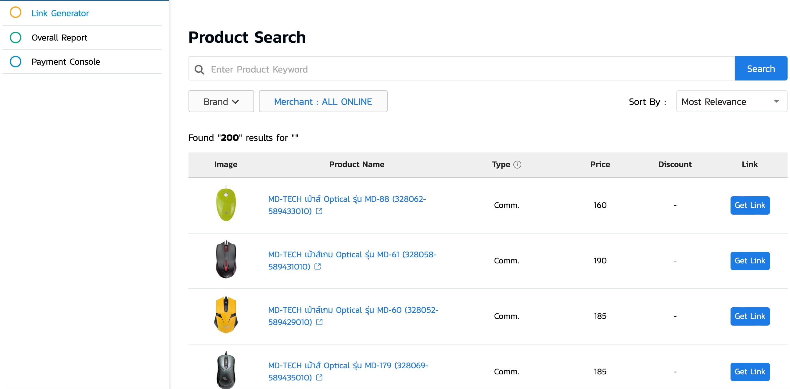 เลือกสินค้าหน้า Product Search และกด Get Link
