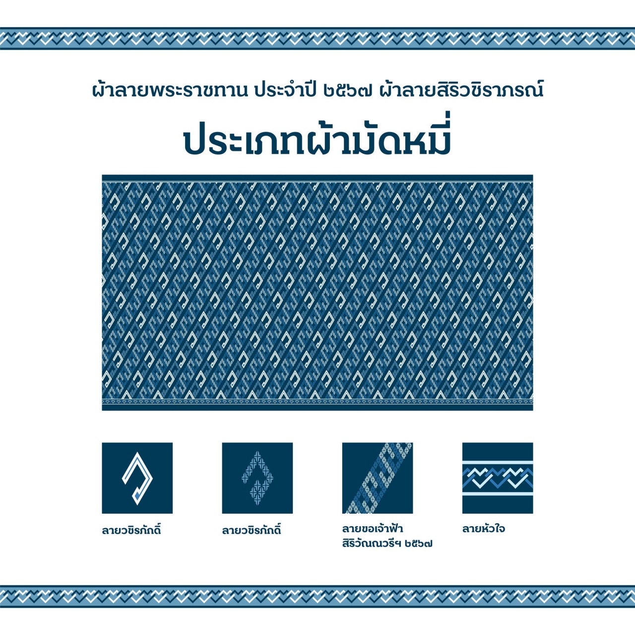 เนื่องในโอกาสมหามงคลเฉลิมพระชนมพรรษาพระบาทสมเด็จพระปรเมนทรรามาธิบดีศรีสินทรมหาวชิราลงกรณ พระวชิรเกล้าเจ้าอยู่หัว ทรงเจริญพระชนมพรรษา 6 รอบ 72 พรรษา สมเด็จพระเจ้าลูกเธอ เจ้าฟ้าสิริวัณณวรี นารีรัตนราชกัญญา ได้ทรงศึกษาค้นคว้าลวดลายผืนผ้าจากทุกภูมิภาคทั่วประเทศ และทรงนำมาออกแบบลายพระราชทานเนื่องในปีมหามงคลนี้ โดยมีลายพระราชทานหลักจำนวน 3 ลาย ได้แก่ ลายวชิรภักดิ์, ลายขอเจ้าฟ้าสิริวัณณวรีฯ ๒๕๖๗ และลายหัวใจ พระราชทานแก่ศิลปินช่างทอผ้าและหัตถกรรมไทย ผ่านทางกระทรวงมหาดไทย เมื่อวันที่ 22 กุมภาพันธ์ 2567 ณ จังหวัดอุบลราชธานี สามารถนำลายพระราชทานหลักทั้ง 3 ลายนี้ ไปถักทอผสมผสานกับลวดลายภูมิปัญญาพื้นถิ่นตามความคิดสร้างสรรค์ของศิลปิน