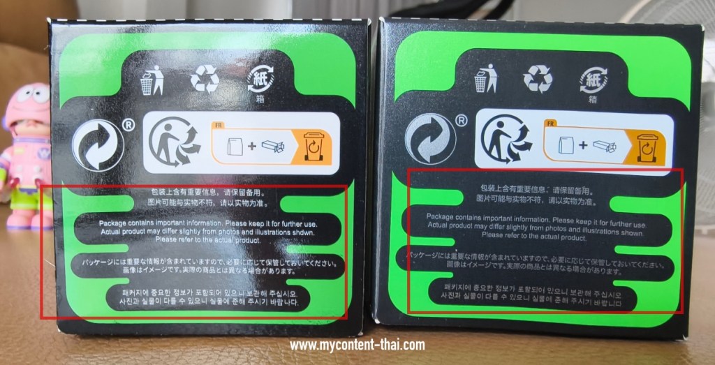 นอกจากนี้การแยก Molly Space 100% ของแท้ ยังดูง่ายๆ ผ่านตัวอักษร และการเก็บรายละเอียดบนกล่องที่ไม่เนี๊ยบเลย ถ้าหยิบกล่องขึ้นมาดูยังไม่ทันแกะ ก็แยกออกแล้วครับ
