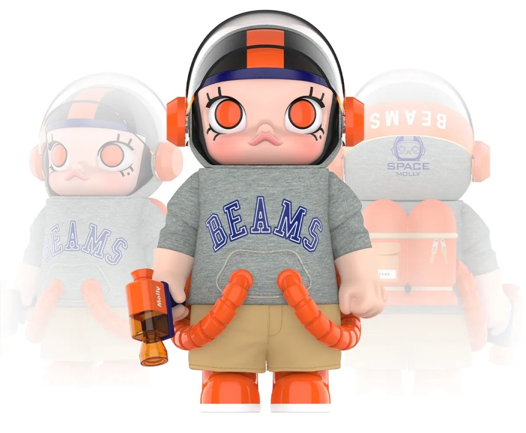 MEGA SPACE MOLLY 400% BEAMS เป็น มอลลี่สเปซรุ่นเดียวที่สวมใส่เสื้อสเวตเตอร์ ซึ่งทำให้ดูเป็นสนีกเกอร์สายสตรีทขึ้นมาเลยทีเดียว ตัวอักษรบนเสื้อปักคำว่า BEAMS