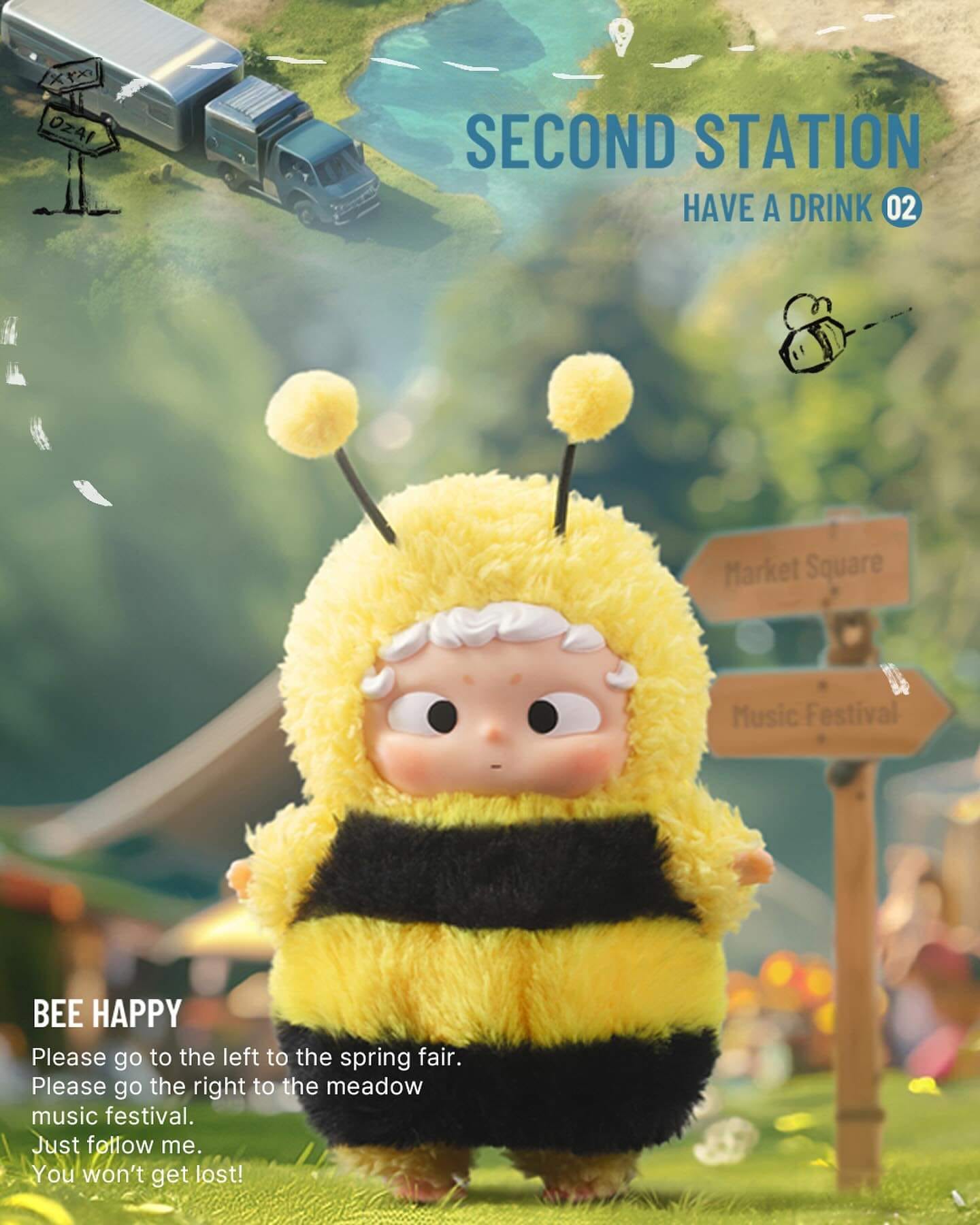ตุ๊กตา Ozai ลายผึ้ง ตัวนี้น่ารัก แตกต่างจากตุ๊กตา Vinyl Face แบบอื่นๆ ใช้ห้อยกระเป๋าได้แบบ Unisex ทั้งกระเป๋าไปทำงาน กระเป๋าไปเรียน และชื่อ “Bee Happy” ก็เป็นมงคลด้วย ฟังดูแล้วเรียกความสุขให้เข้ามาในทุกๆ วัน