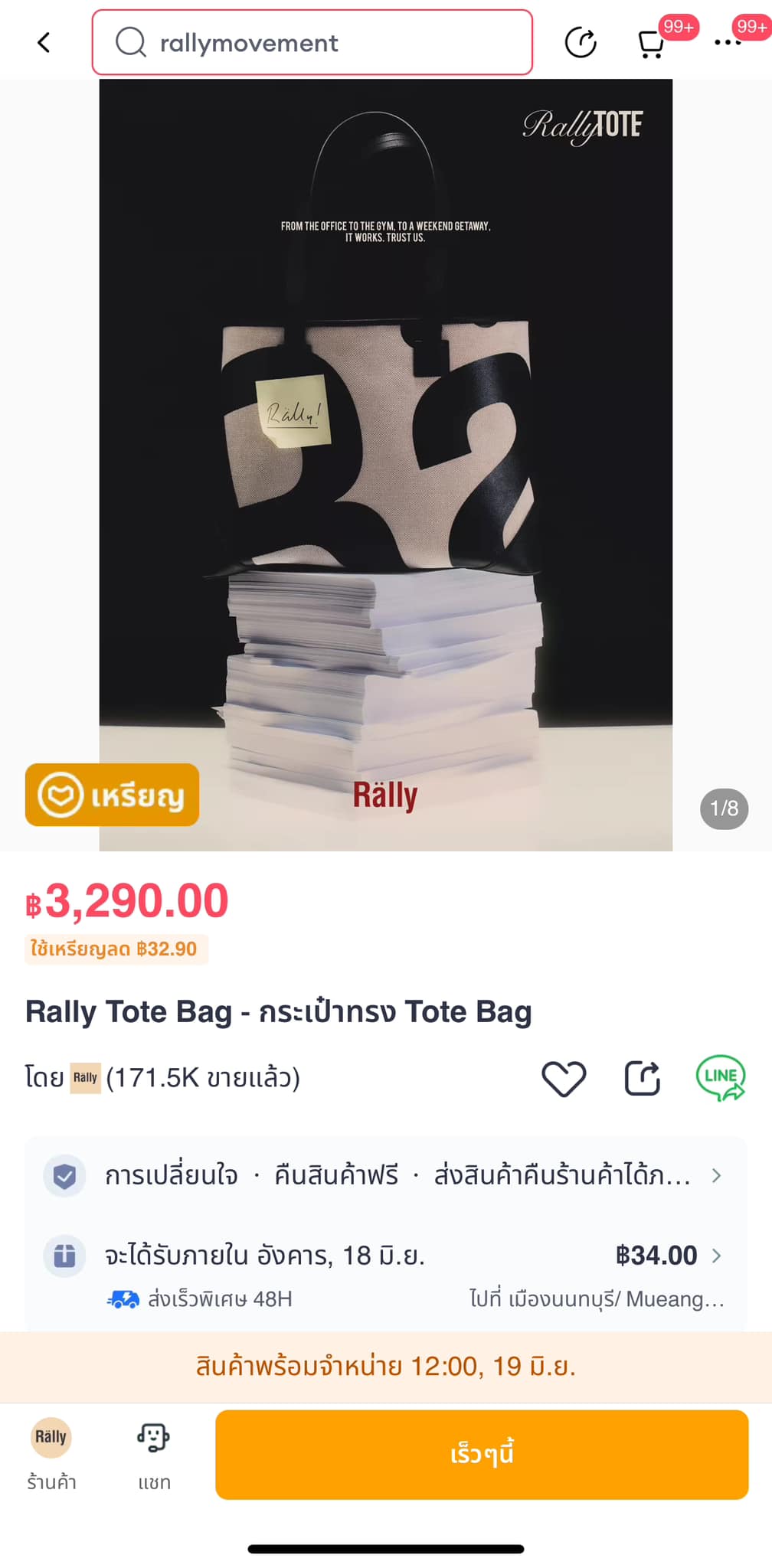 คลิกสั่งซื้อ Rally Tote Bag รุ่นใหม่ ราคา 3,290 บาท ที่นี่