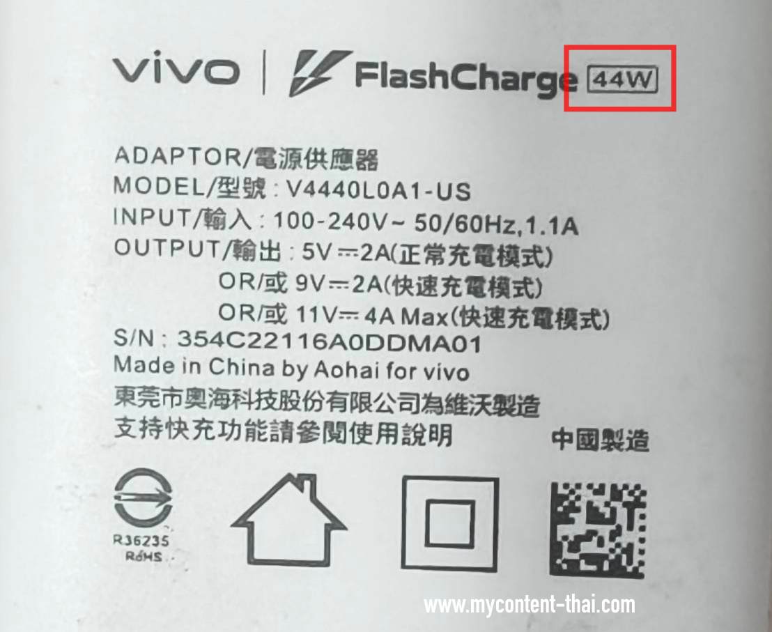 1. พลิกสายชาร์จมาดูจำนวนกำลังไฟที่ระบุไว้