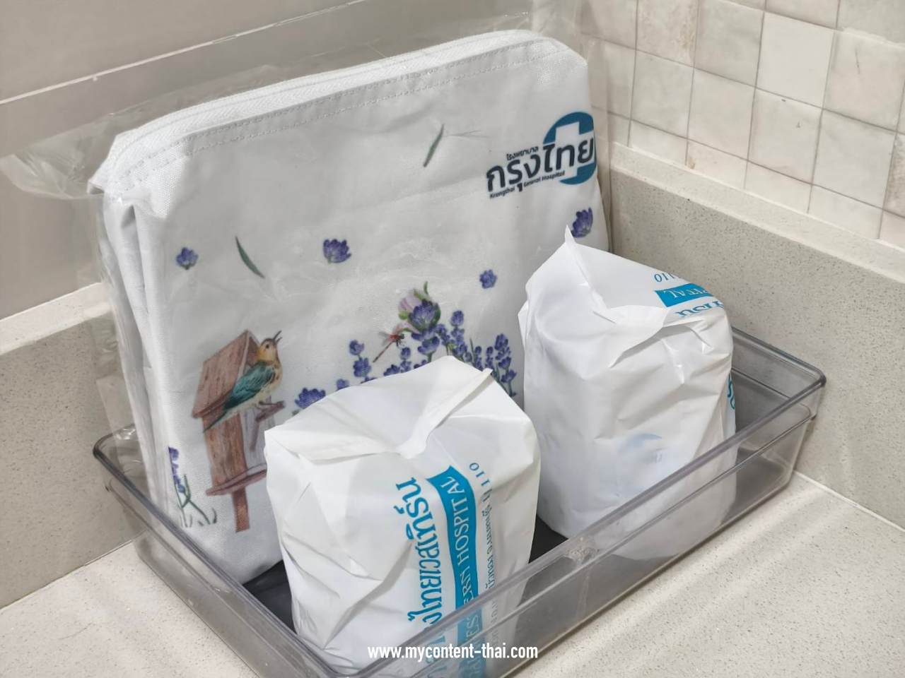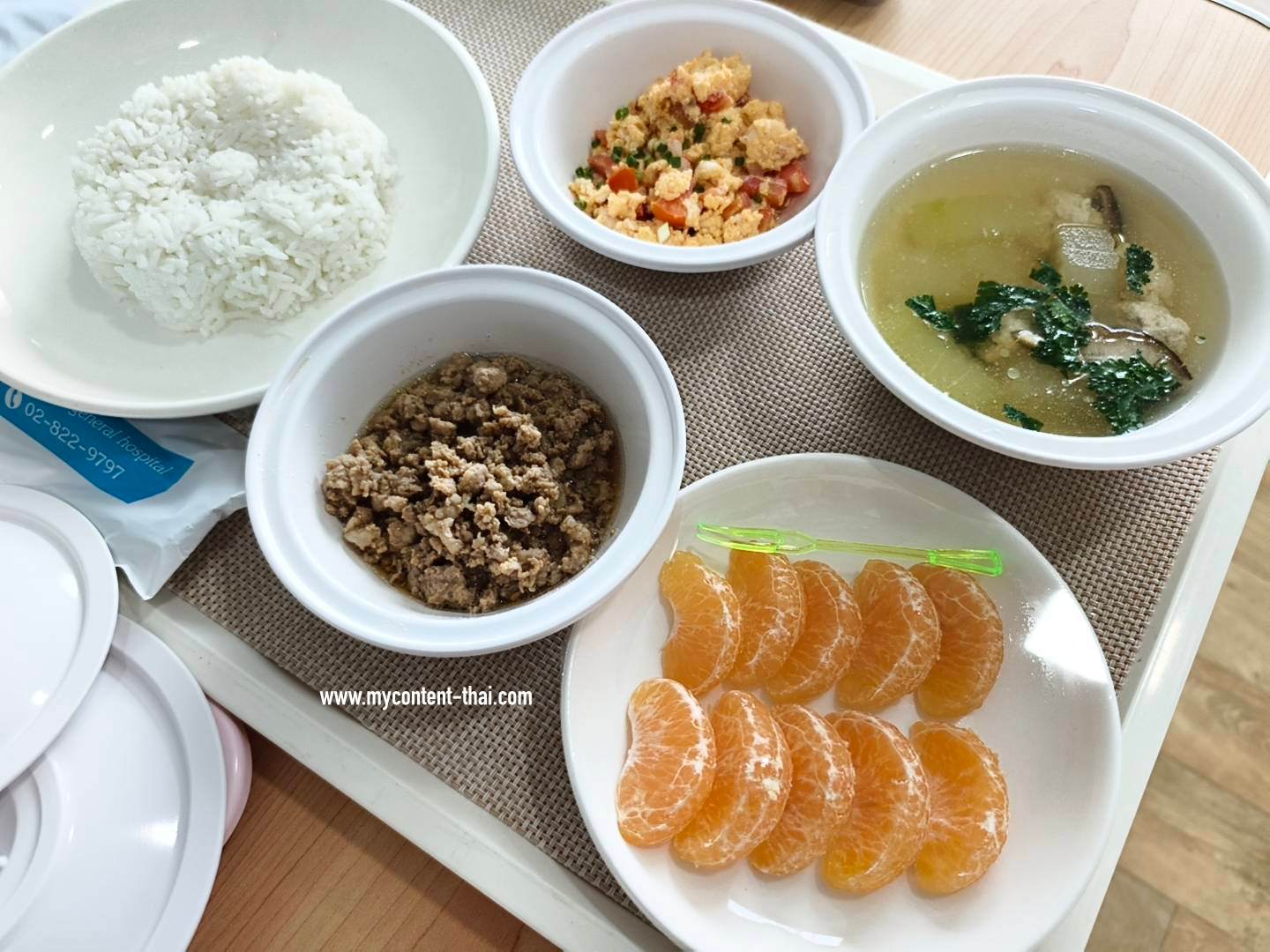 ส่วนอาหารโรงพยาบาลกรุงไทยเวสเทิร์นสำหรับผู้ป่วยนั้น เราไม่ต้องรีไคว์อะไรมาก โรงพยาบาลจัดแบบไหนมาเราก็ทานได้หมด โดยคุณพยาบาลที่รับน้องเข้าวอร์ดจะสอบถามศาสนา และสิ่งที่น้องแพ้ก่อนที่จะจัดมาให้ ภาพรวมแล้วรสชาติดีสมกับระดับราคา