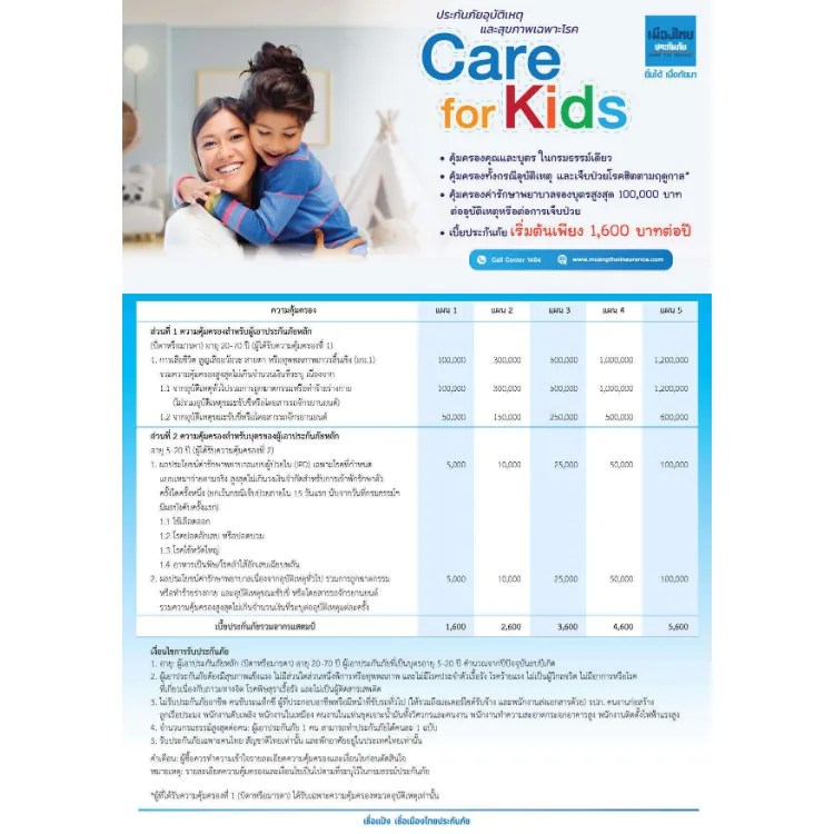 ประกันสุขภาพเด็กเฉพาะโรค Care for Kids เมืองไทยประกันภัย