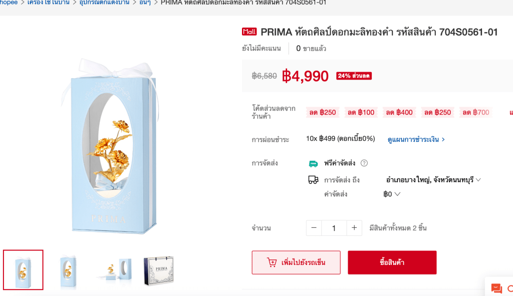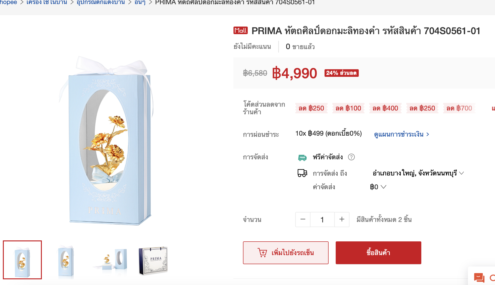ดอกมะลิทองคำหัตถศิลป์ จากร้าน Prima Gold บรรจุอยู่ในกล่องสีฟ้าสวยงาม พร้อมเป็นของขวัญวันแม่ที่มีคุณค่า (คลิกสั่งซื้อได้ที่ Shopee)