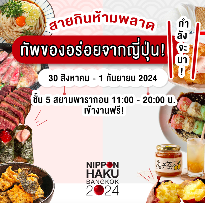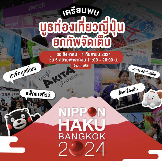 กลับมาสร้างความสุขให้กับ เจแปนเลิฟเวอร์ได้ฟินกันอีกครั้ง กับงาน NIPPON HAKU BANGKOK 2024 มหกรรมที่รวมทุกเรื่องของญี่ปุ่นแบบขั้นสุด แล้วคุณจะ โดนตกไม่รู้ตัว