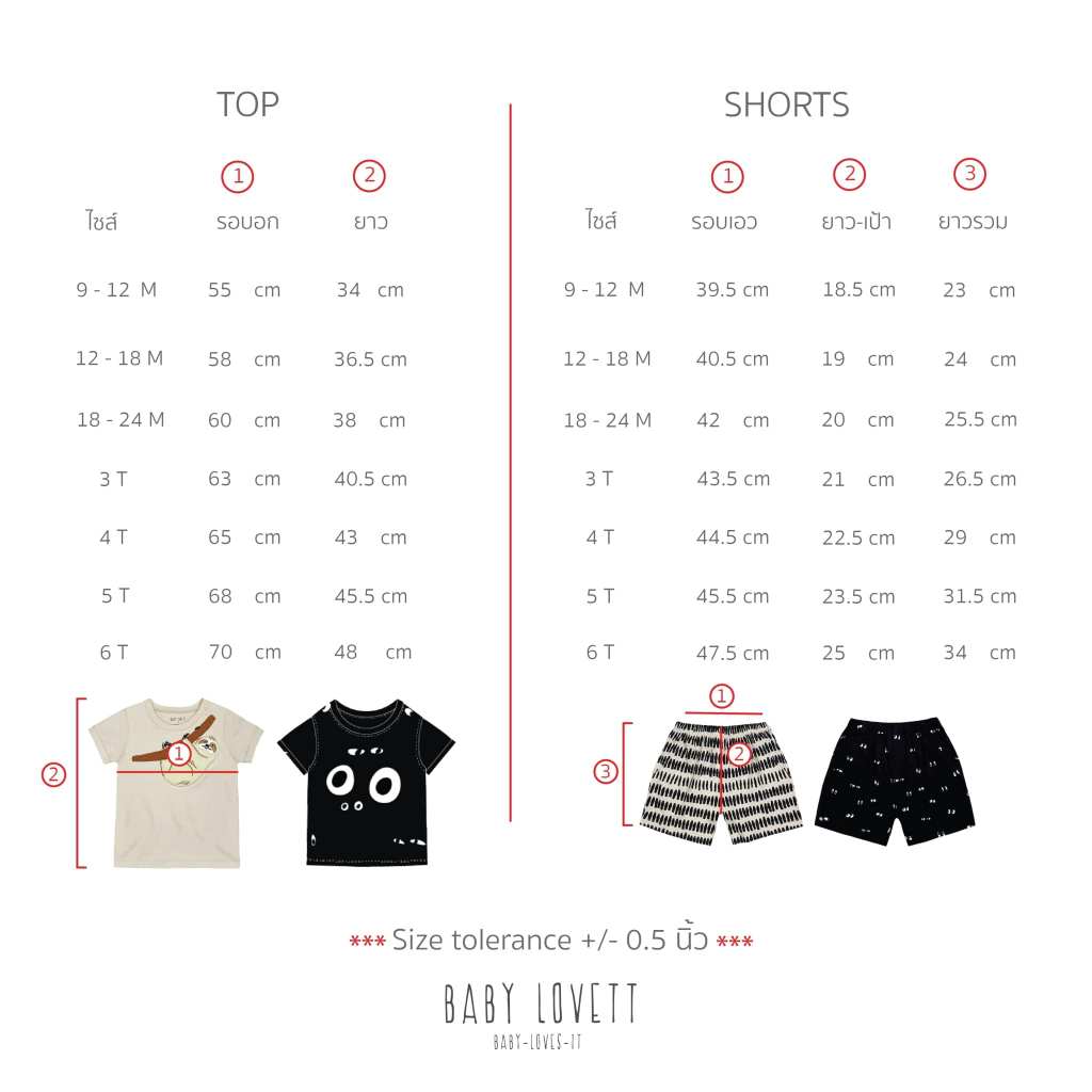 วิธีดู Size Chart ของ BabyLovet ของชุดเสื้อเชิ้ต (Shirt & Short)
