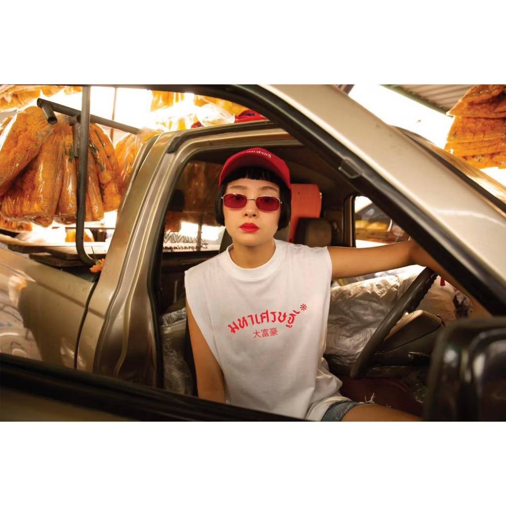 เสื้อแบบทองประกายแสด ใช้เสื้อแขนสั้น Oversize หรือเสื้อคอกลมแขนกว้าง ถ้าอยากได้เสื้อเกร๋ๆ ใส่ได้หลายโอกาส ผ้าดี ใส่ทนๆ ลองดูเสื้อยืดมหาเศรษฐีสีแดงหรือสีขาว ใส่แล้วไปหาร้านของชำถ่ายรูปสวยๆ (คลิกที่นี่)
