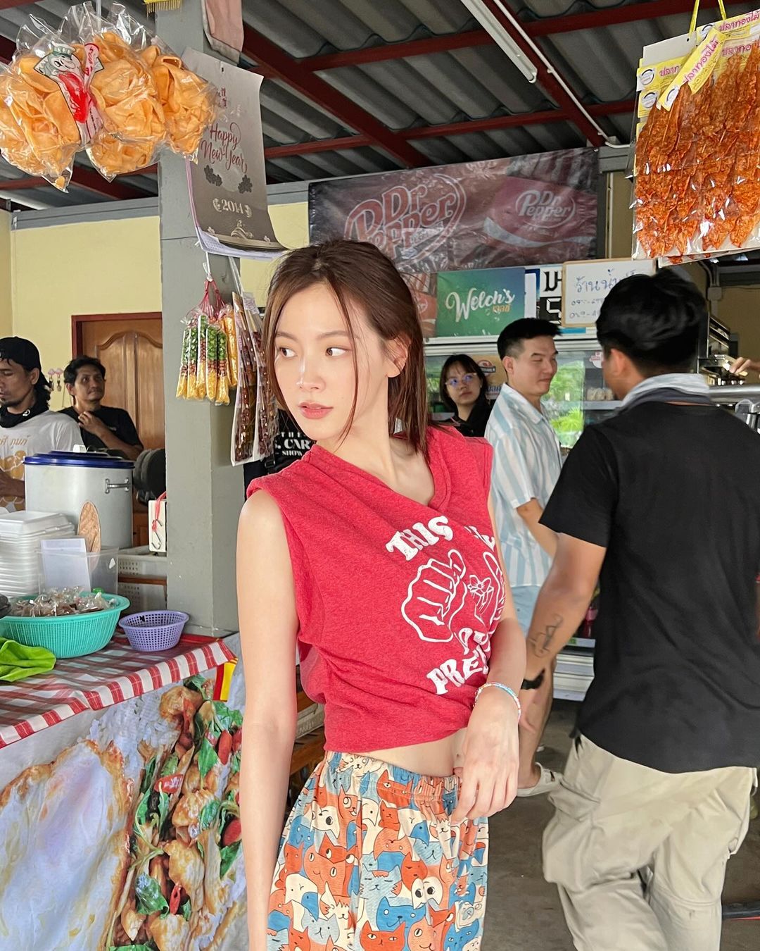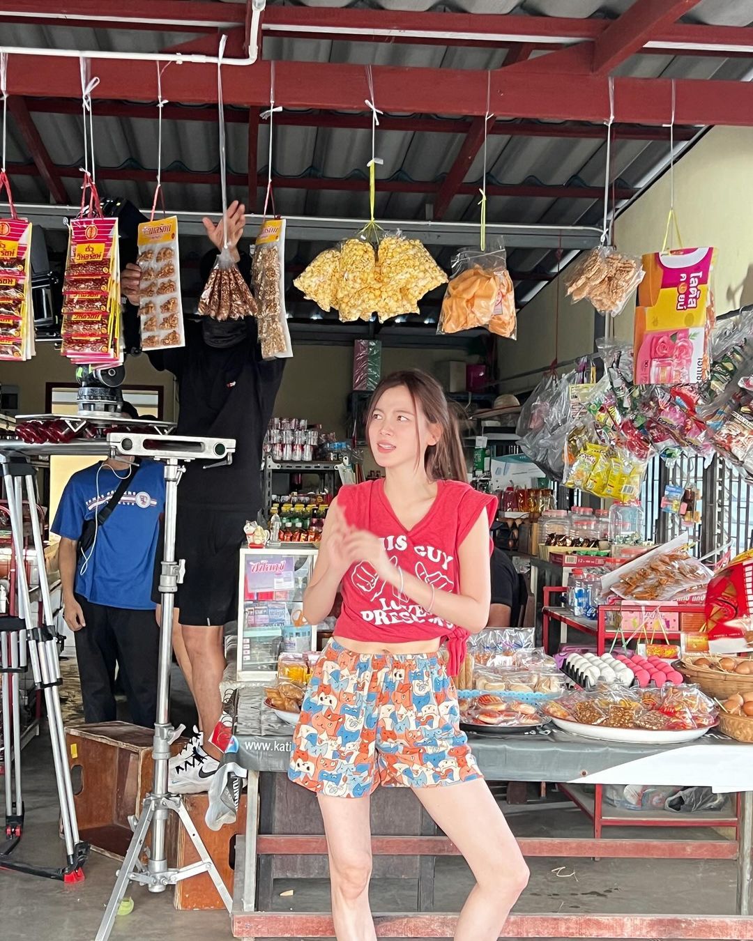 หามุมคัฟเวอร์สวยๆ เป็น “ทองดี” แบบทองประกายแสด ด้วยเสื้อวินเทจ Y2K สีแดง และกางเกงขาสั้นลายการ์ตูนน่ารักๆ ภาพนี้จาก “ทองประกาสแสด EP 1” เปิดตัวทองดีตอนโต “อีทองดี เมิงนี่นะ ไปเปลี่ยนกางเกงก่อน สั้นเสมอง่ามอย่างนี้ คนจะเข้าใจผิดว่าร้านกูขายอะไรกันแน่”
