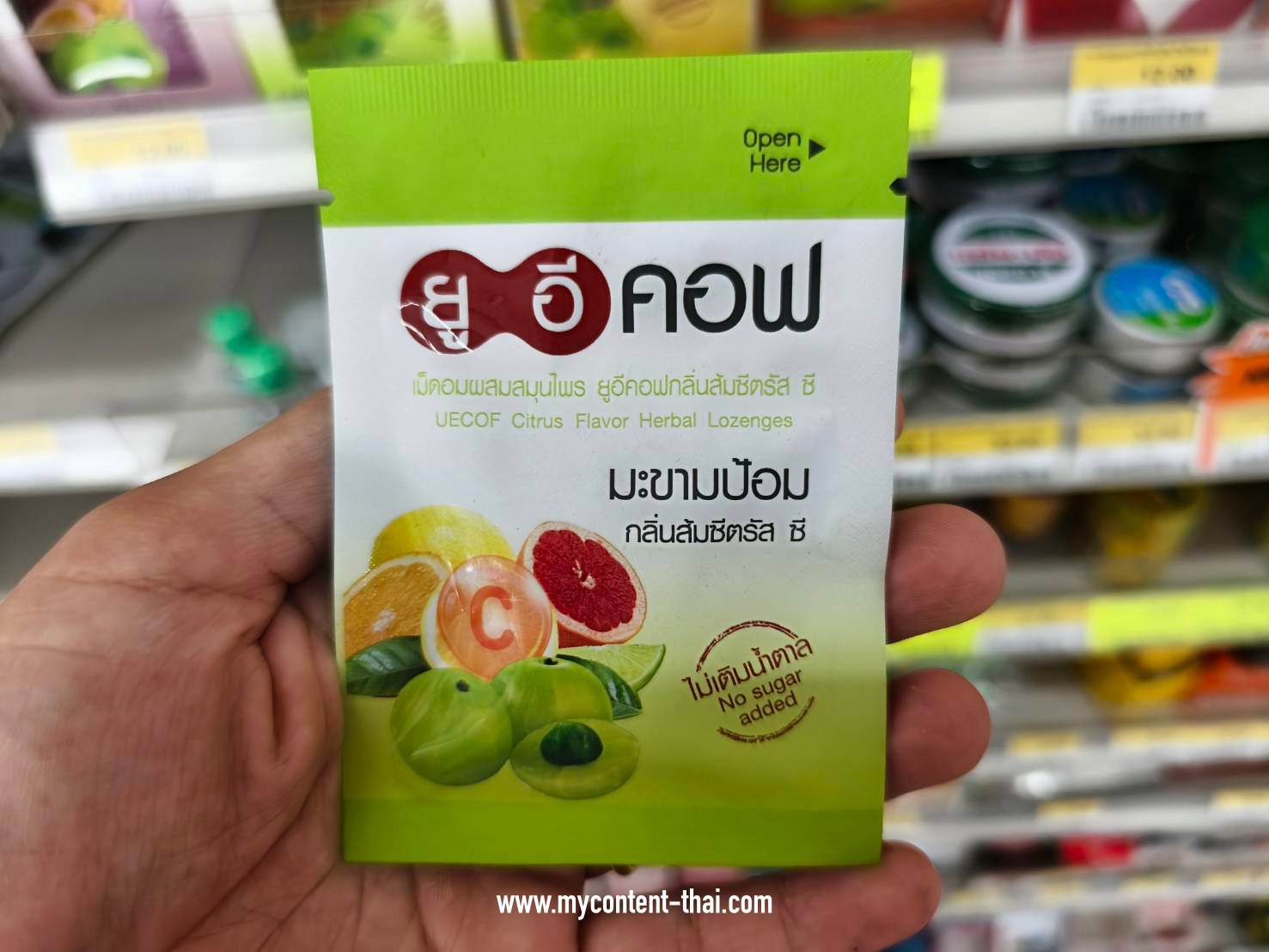 - ยูอีคอฟ ยาอมแก้ไอ มะขามป้อม แพ็ก 20 ซอง (บรรจุ 6 เม็ด/ซอง) สูตรไม่มีน้ำตาล 228 บาท คลิกสั่งซื้อที่ AllOnline ที่นี่