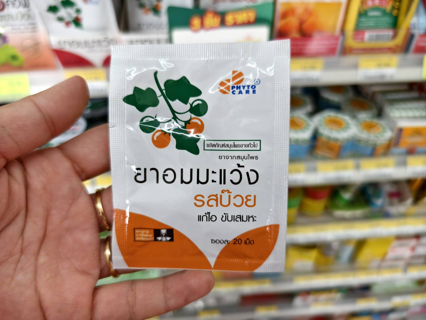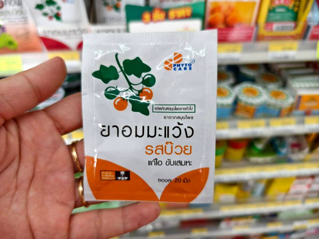 ยาอมมะแว้ง แก้ไอ ขับเสมหะ PHYTO CARE เท่าที่เห็นใน 7-11 สาขานี้มี 2 รส คือ รสบ๊วย และรสออริจินัล แก้ไอ ขับเสมหะ ใช้สมุนไพรมะแว้งช่วยบรรเทาอาการระคายเคืองในคอ