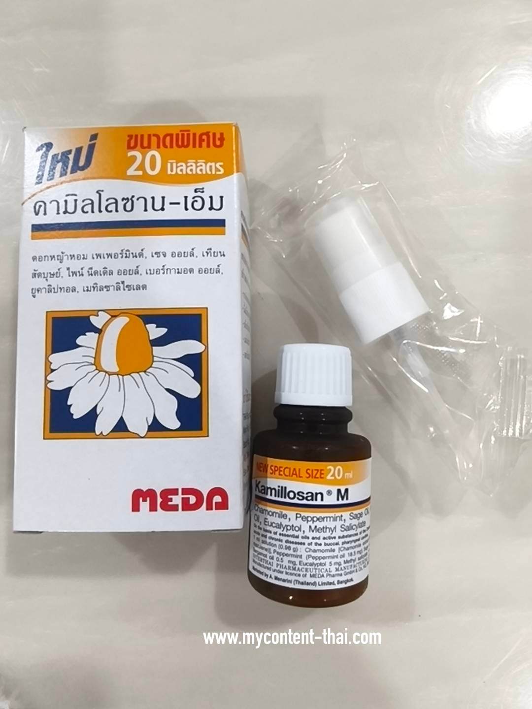 - สเปรย์บรรเทาอาการไอและเจ็บคอคามิลโลซาน-เอ็ม