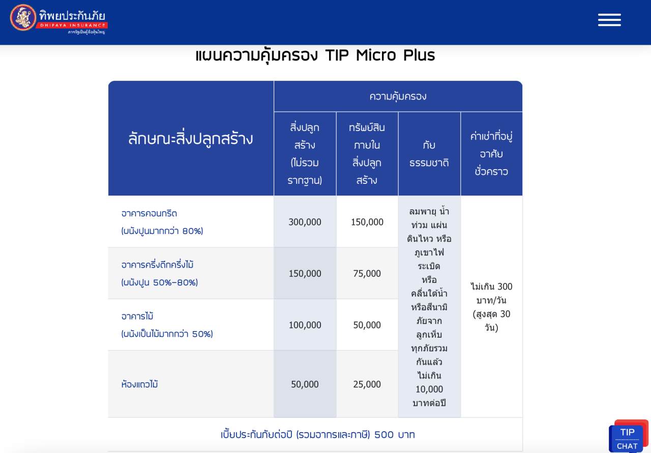 3. ประกันน้ำท่วม ทิพยประกันภัย “TIP Micro Plus &TIP Micro 400”