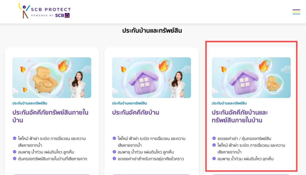 6. ประกันน้ำท่วม แผน 1D อัคคีภัยบ้านและทรัพย์สินในบ้าน จาก SCB Protect x เทเวศน์ประกันภัย