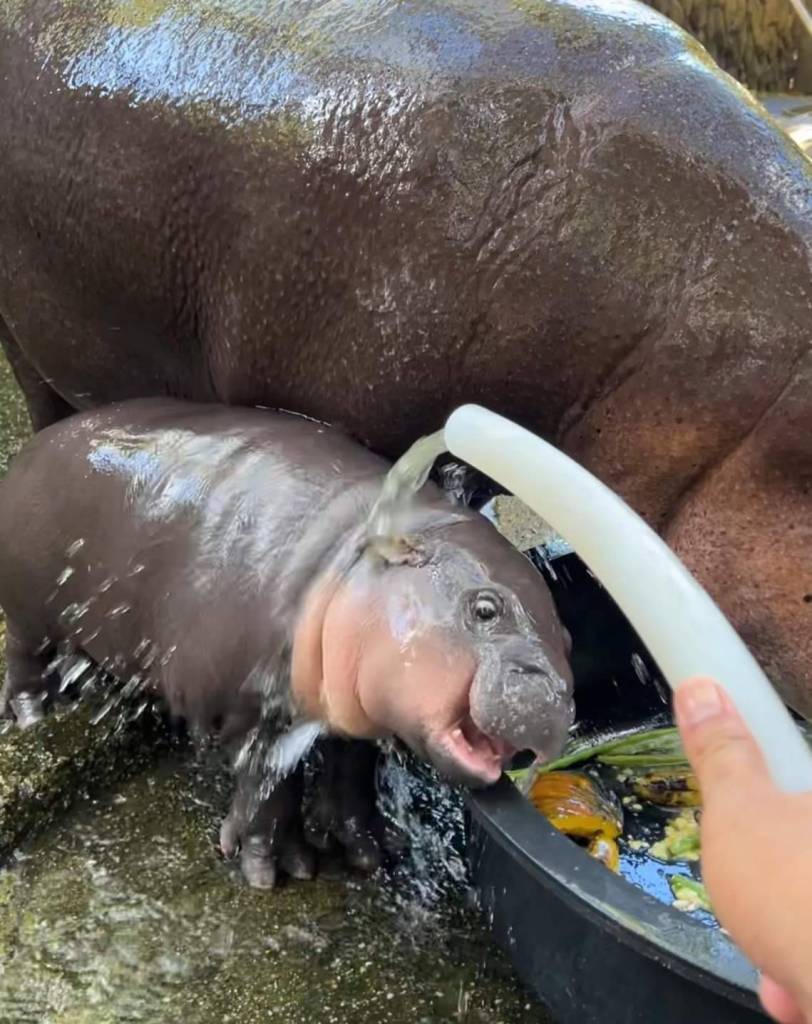 ความน่ารักของหมูเด้ง กลายเป็นมีมในไม่ช้า เพราะด้วยความเป็นฮิปโปเด็ก ก็จะมีโมเม้นท์คันเขี้ยวใส่คนเลี้ยงบ้างเล็กน้อย