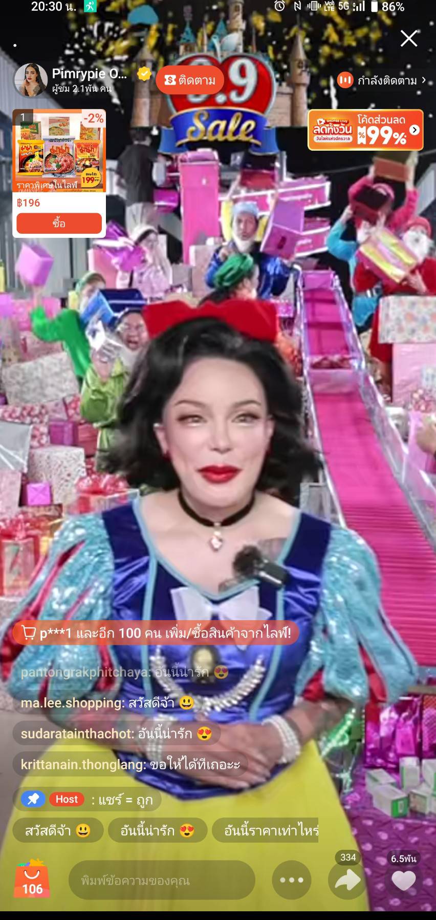 ช่องของ Pimrypie ใน Shopee Live ถือว่าเป็นช่องที่ประสบความสำเร็จสูงสุด การไลฟ์แต่ละครั้งมีผู้ชมกว่า 2,000 คน โดยเฉพาะช่วง 9.9 ที่ผ่านมา มีผู้ชม 8,000 คน เพื่อดูสินค้าที่นำมาขาย แต่ละชิ้นราคาไม่แพง และมีวิธีการไลฟ์ที่สนุกสนาน ตื่นตาตื่นใจ เรียกได้ว่าใช้พื้นที่บนหน้าจอโทรศัพท์ต่อการไลฟ์ 1 ครั้ง ได้ทุ้มค่ามาก