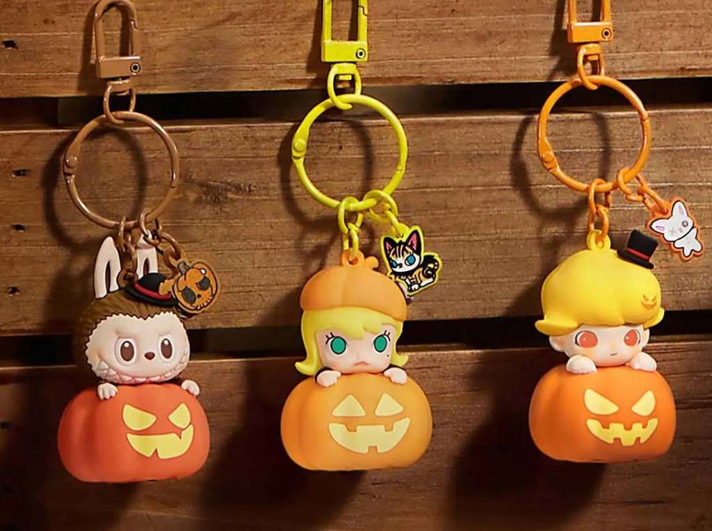 พวงกุญแจฮาโลวีนเรืองแสง มี 3 คาแรกเตอร์ ได้แก่ Baby Molly, Dimoo และ Labubu สีสันของฟักทองแจ็ก โอ แลนเทิร์น เก๋ๆ ที่อก และมีฟักทองน้อยห้อยอยู่ตรงส่วนที่เป็นพวงกุญแจลาบูบู้อีกด้วย