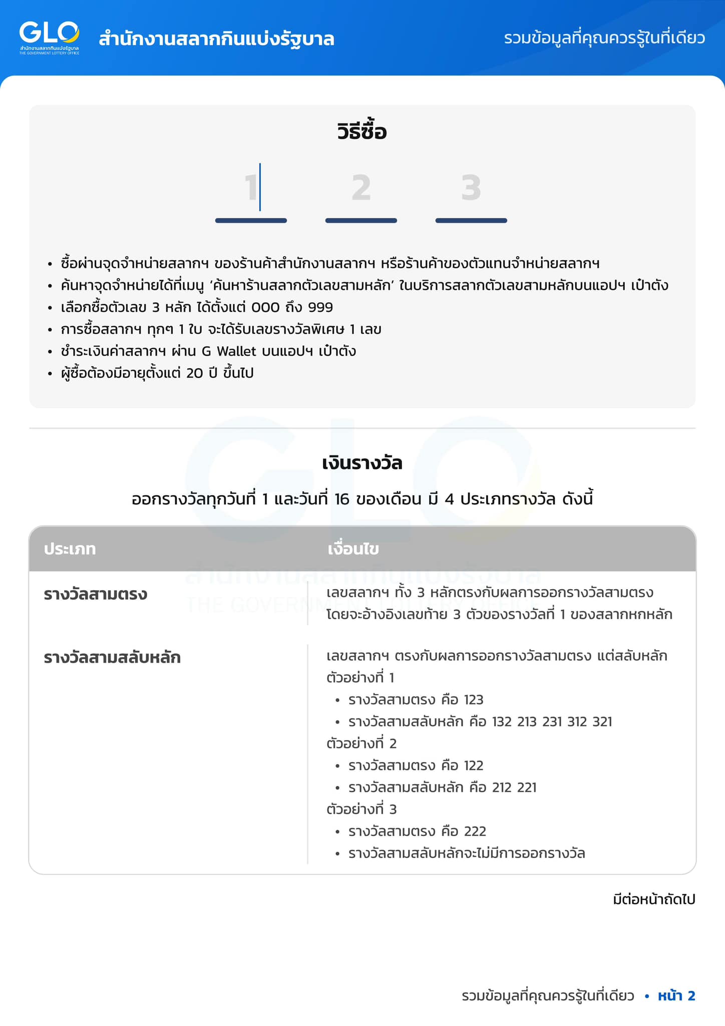 | 3 ตัวตรง | สัดส่วนเงินรางวัล 30% | จากยอดขายทั้งหมดในแต่ละงวด |