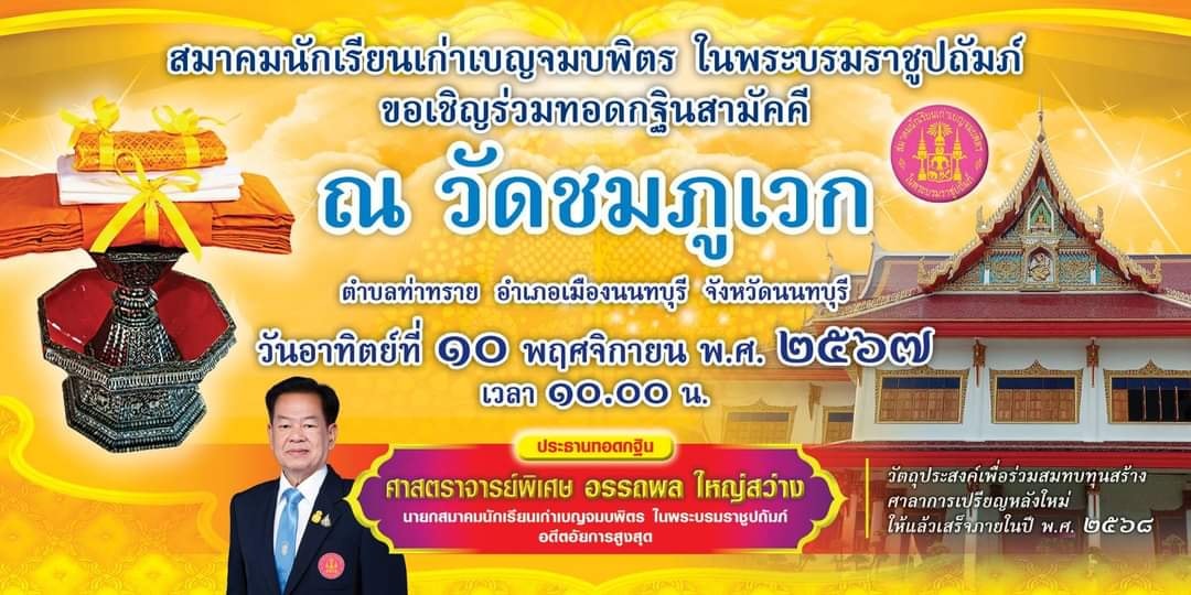| วัดบางบัวทอง ทอดกฐินวันที่ 10 พ.ย. 2567 10:00 |