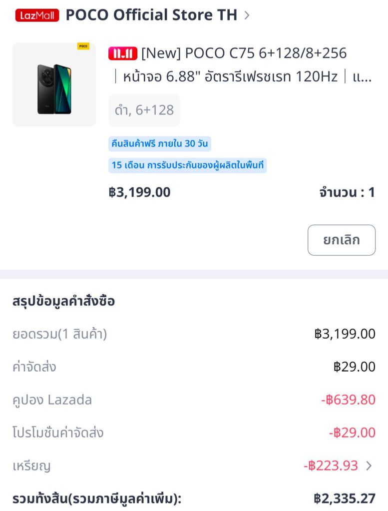 POCO C75 เป็นโทรศัพท์มือถือค่ายเดียวกับ Xiaomi เปิดตัวใน 11.11 ครั้งแรกใน Lazada และมีคนได้ของแล้วตั้งแต่วันที่ 9-10 พฤศจิกายนที่ผ่านมา (เพราะ Lazada เริ่มโปร 11.11 ในวันที่ 8 พฤศจิกายนที่ผ่านมา) หลายคนได้จับแล้ว ต่างบอกว่า ราคาเกินคุ้มมากๆ มาดูสเปคคร่าวๆ กันค่ะ