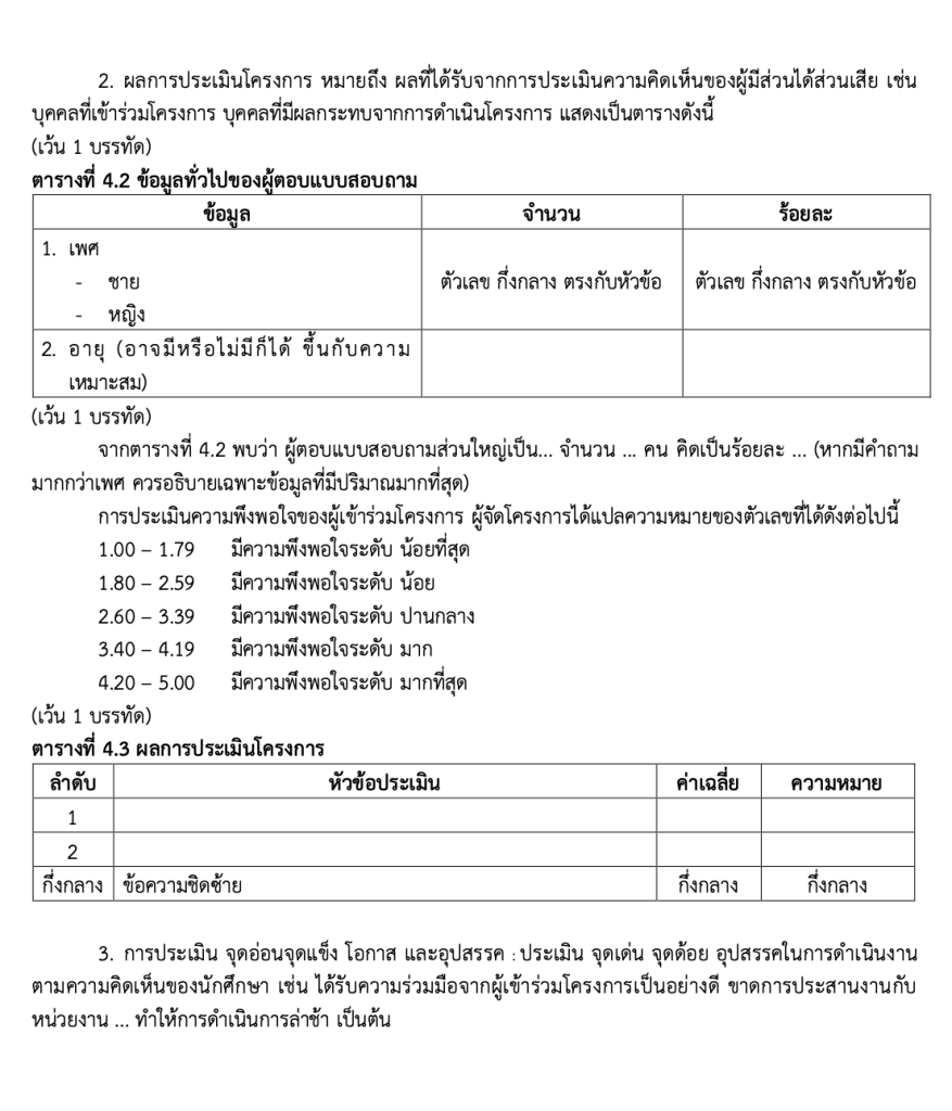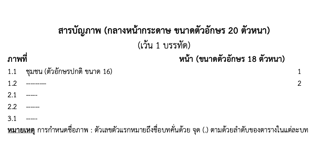 - สารบัญ (อาจจะมีสารบัญตาราง และตารางรูปภาพ)