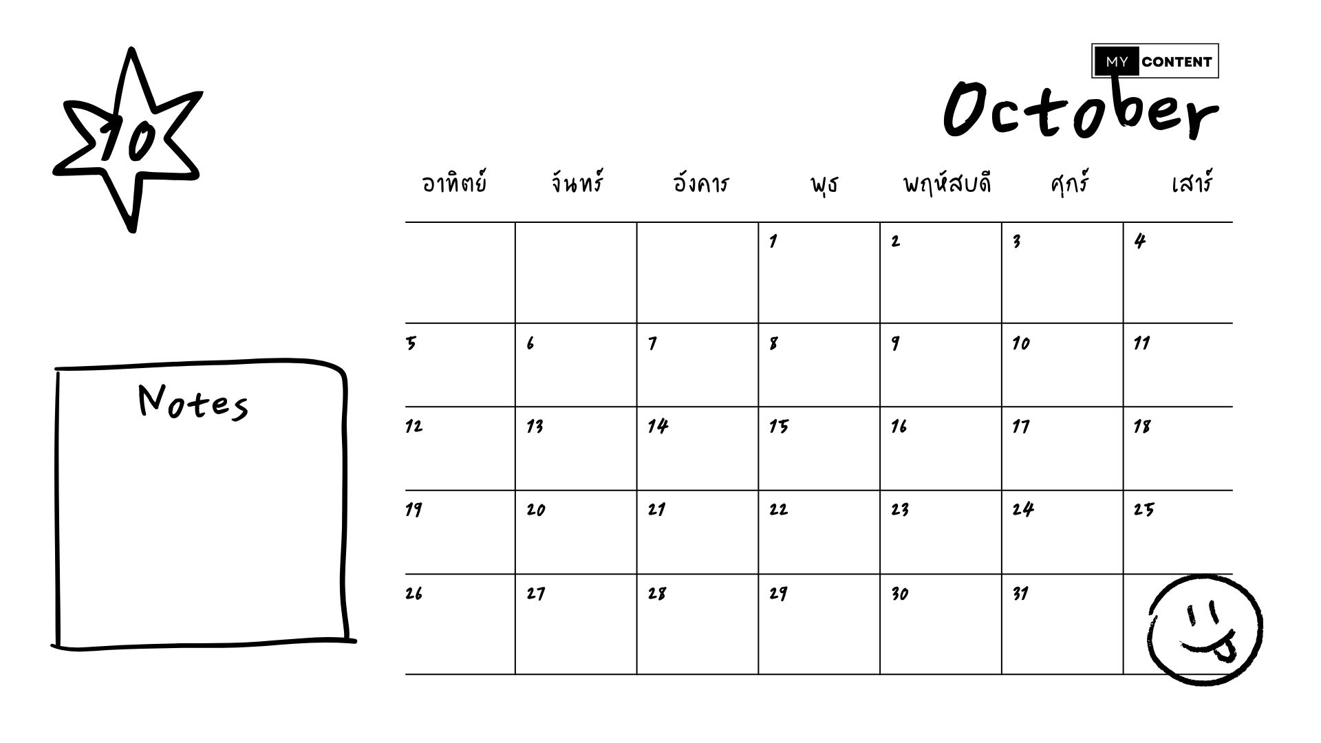 ปฏิทินเดือนตุลาคม 2568/2025