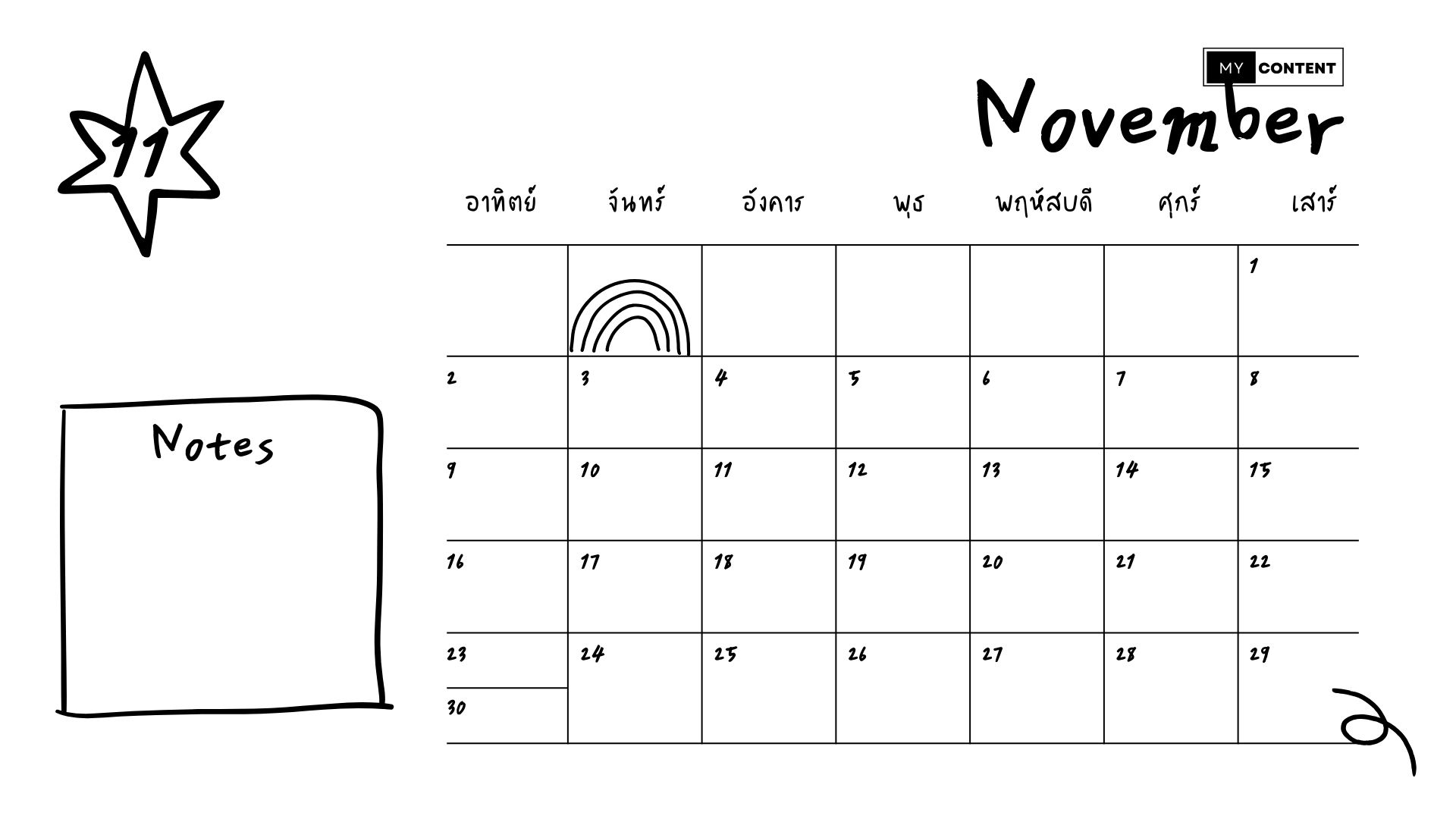 • ไม่มีวันหยุดตามปฏิทินเดือนพฤศจิกายน 2568